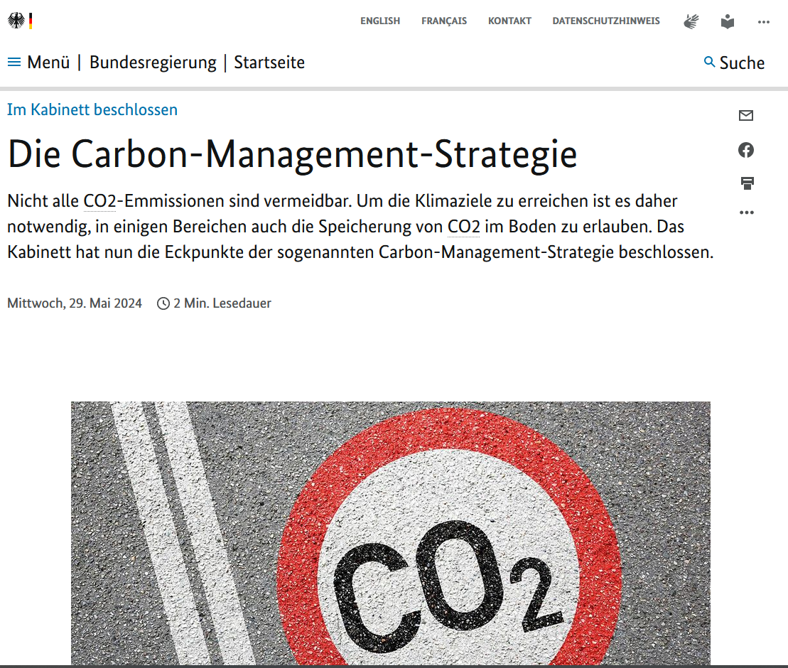 Pressemitteilung zu den Eckpunkten der Deutschen Carbon Management Strategie